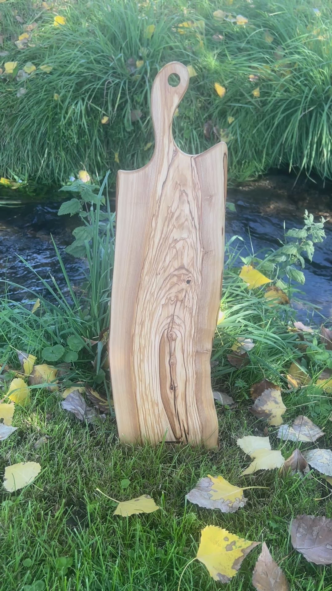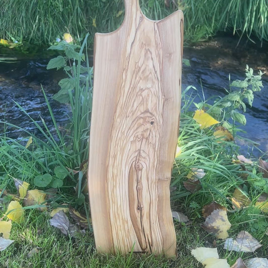 Handmade Long Live-Edge Olive Wood Cutting Board – Stunning Grain Pattern
